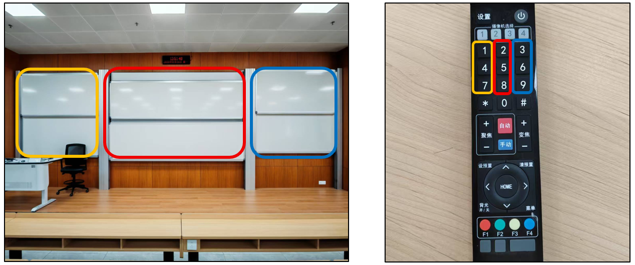 (The preset positions may vary slightly between different teaching buildings. And the remote controls in some classrooms are white.) -