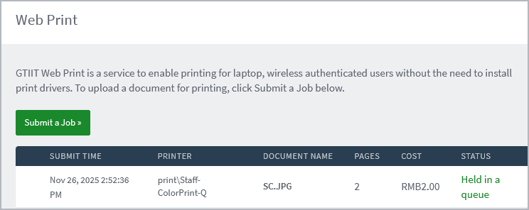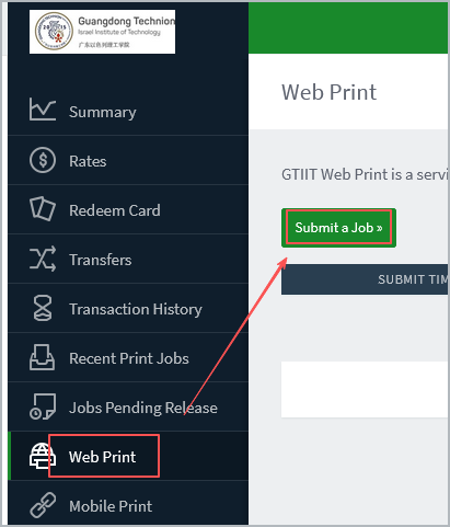 - In your browser, go to https://print.gtiit.edu.cn:9192/user