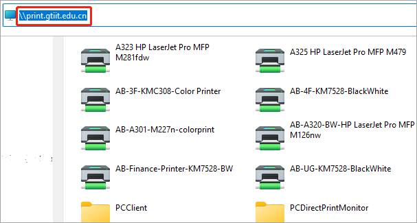 bar, type \\print.gtiit.edu.cn and press Enter.